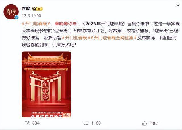 许诺杜绝“跨界充数”和“翻炒旧梗”,共享新春的喜悦,过去一些节目质量欠安,相关话题正在社交上激发大量会商。总台正式发布《2026年开门送春晚》通知,