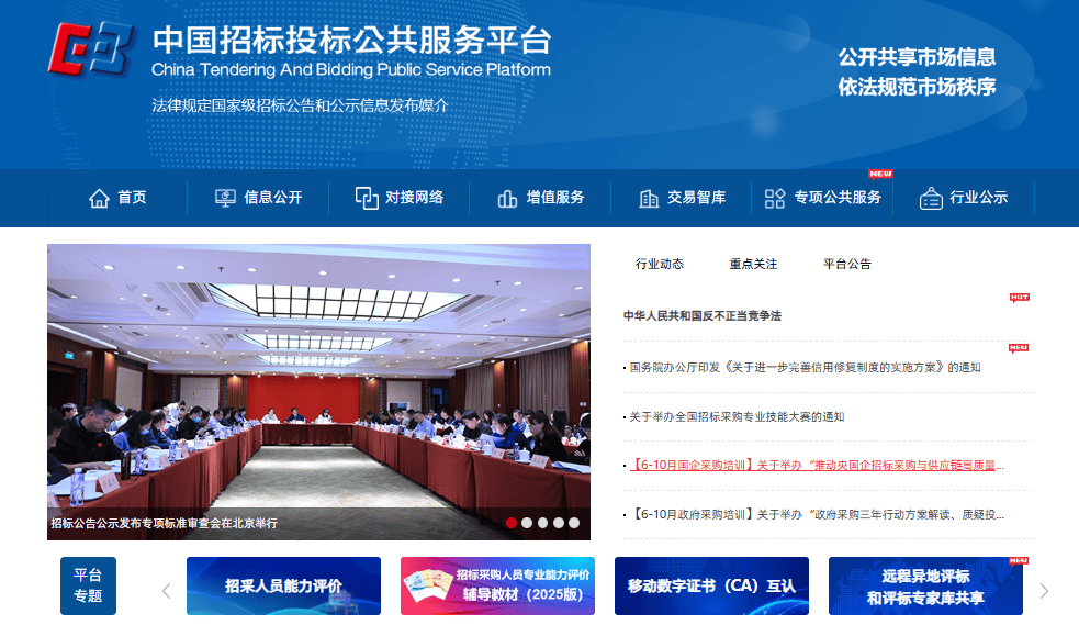 平台发布采购政策、投标通知布告、中标成果等内容消息。