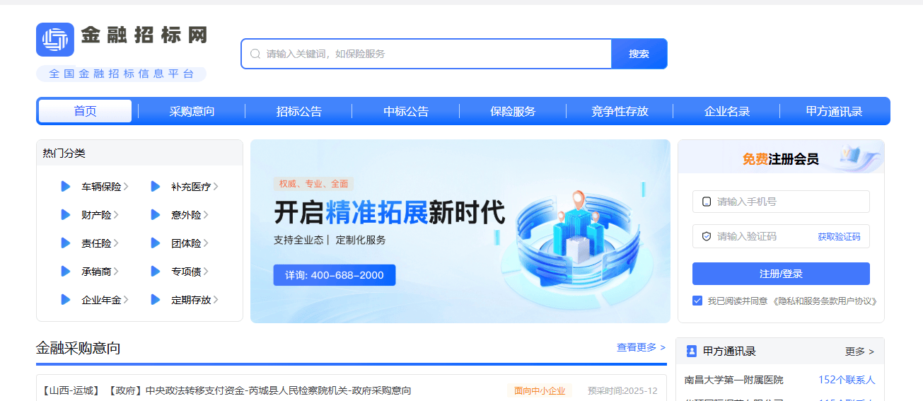 金采网是中国金融学会金融采购专业委员会的营业平台,帮你高效捕获商机。平台及时更新金融采购范畴政策律例、监管要求,